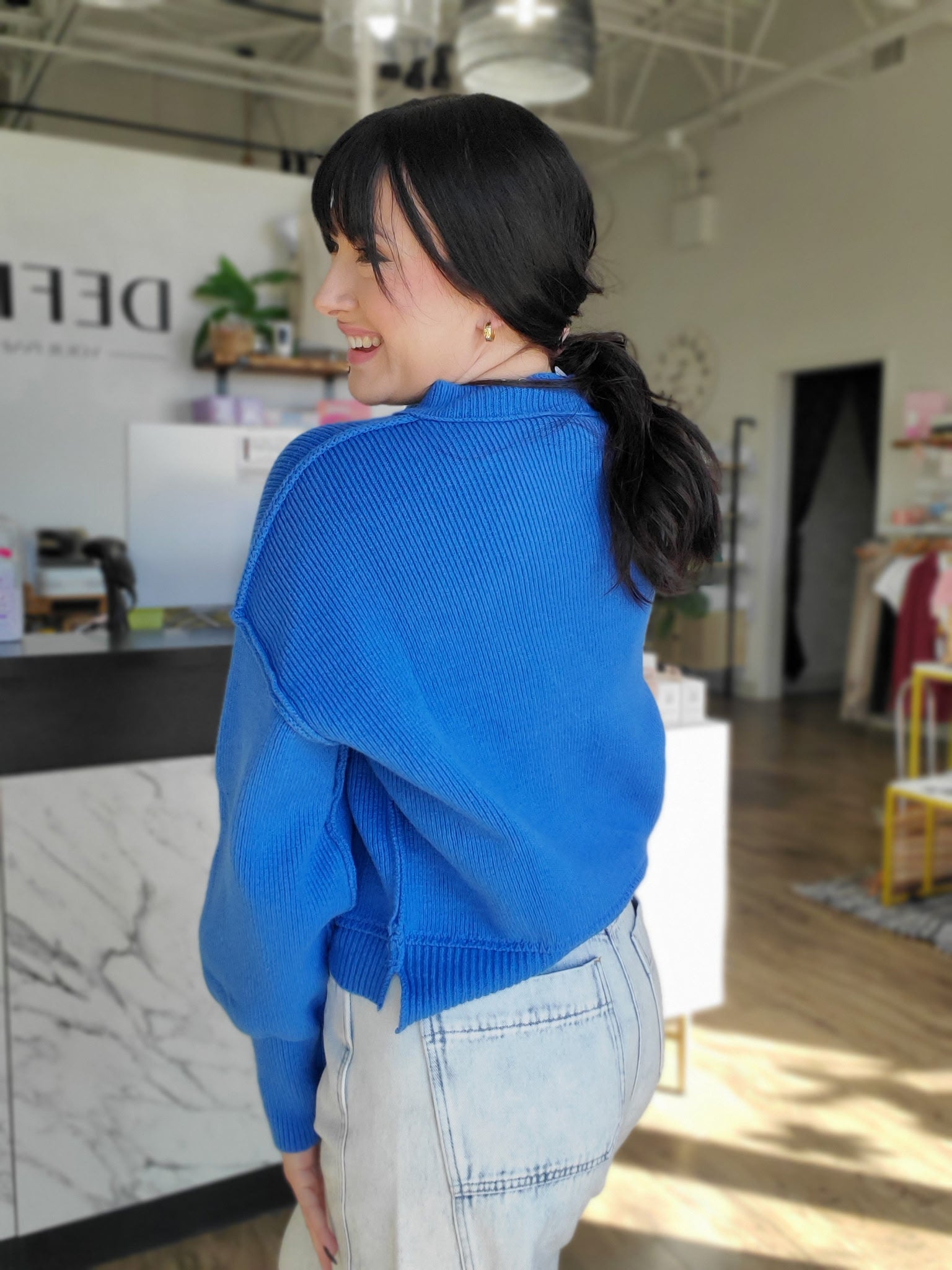 Stay cozy and stylish with the Regina Sweater in Cobalt Blue! This vibrant sweater is not only eye-catching, but also incredibly soft and comfortable. Perfect for cuddling up during chilly days or making a statement with your fashion choices. (Disclaimer: not responsible for envy from friends)